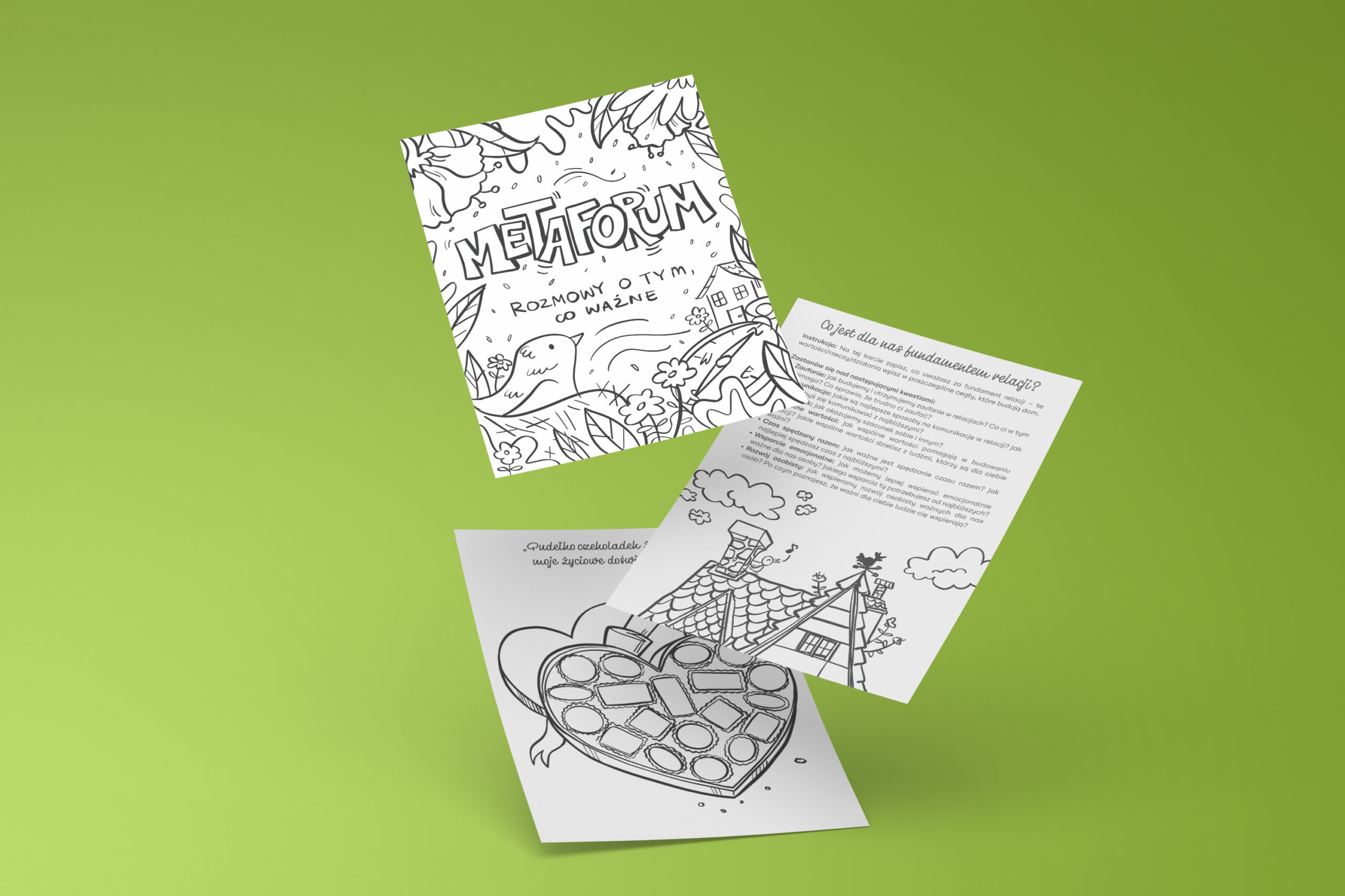 „Metaforum” to zestaw 31 kart metaforycznych, które pomogą ci w rozmowach o ważnych sprawach. Każda karta zawiera inspirującą metaforę i pytania, które pobudzą do refleksji nad sobą oraz relacjami z innymi i otaczającym światem.