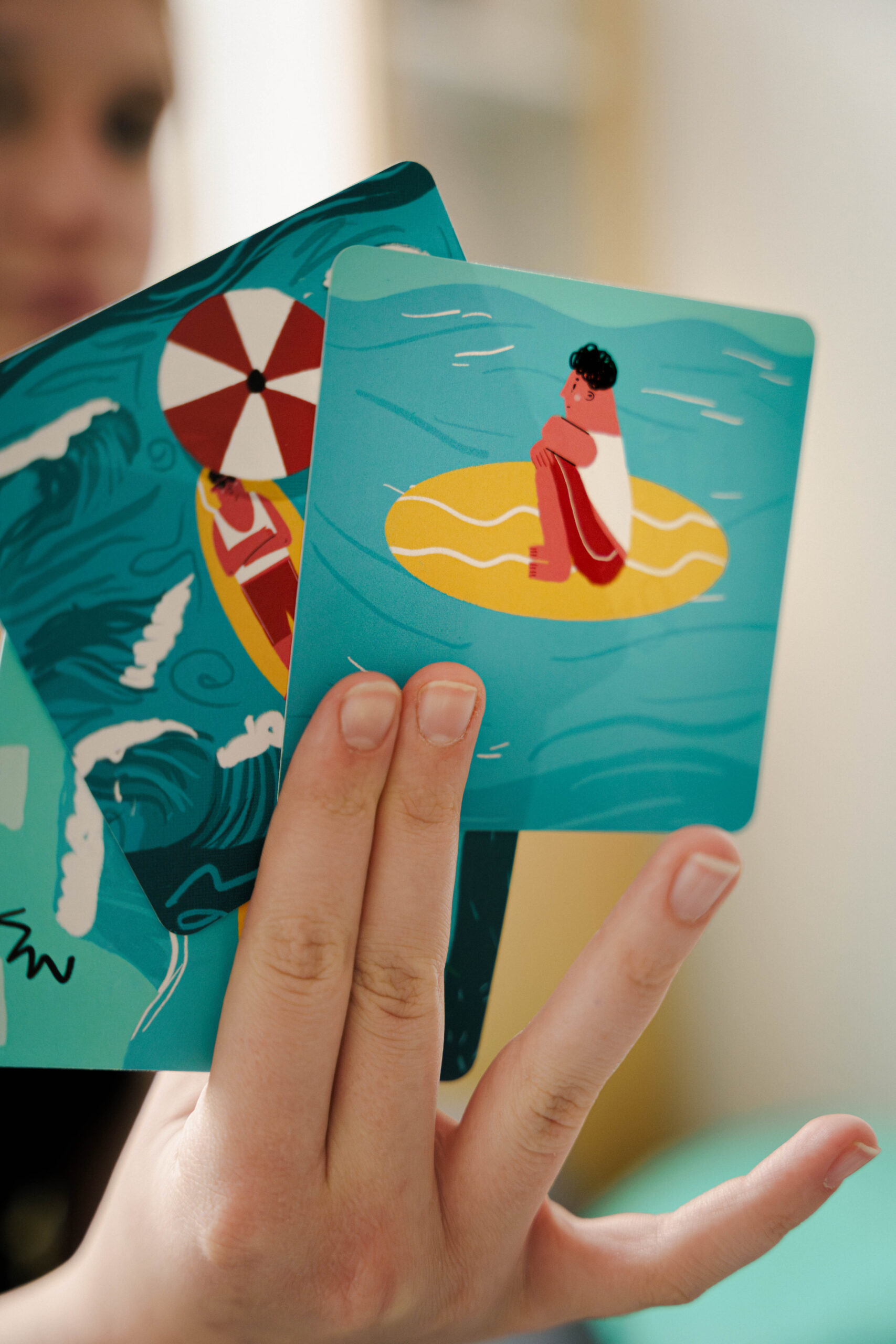 Karty opierają się na metaforze, która porównuje emocje do fal na morzu. To wyjątkowo trafne porównanie – pomaga nie tylko zrozumieć, jak działają emocje, ale przede wszystkim odkryć, w jaki sposób na nie reagujesz/radzisz sobie z nimi.